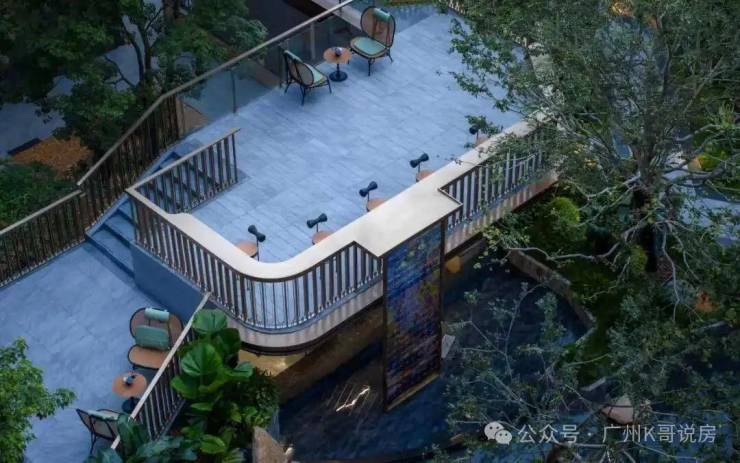 社区还规划了下沉式观瀑亭、露天社交会客厅、风雨连廊等设施,让居民在雨天不湿鞋,夏天不晒黑,在园林内可享受五星级酒店般的归家体验。