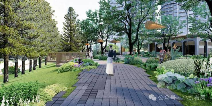项目园林将打造六大社区花园,外部将优化南侧水道,打造一线河景+双公园