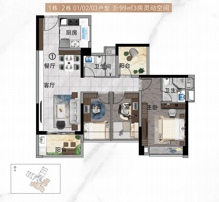 业态分布:1栋写字楼+2栋商办公寓+4栋住宅+建面约2000㎡商业