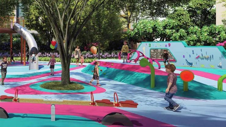 小区内配备星光泳池、夜光跑道、屋顶花园等