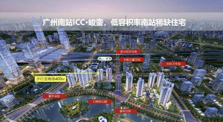广州南站核心圈内稀缺住宅用地(4 平方公里核心区内,住宅建筑指标规划仅约 39 万㎡,峻銮约占 46%)