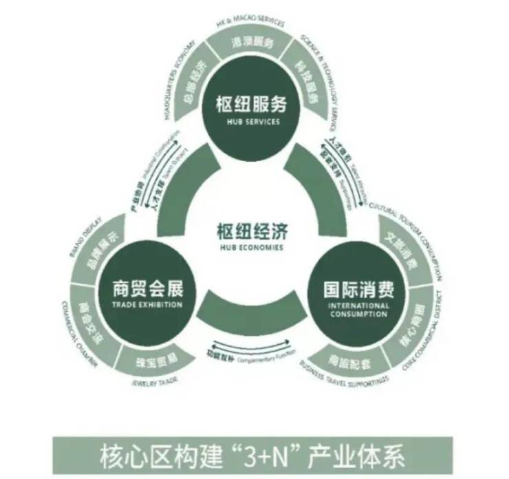 在产业方面,广州南站核心区则是构建“3+N”产业体系,覆盖大湾区1小时生活圈。为企业落户提供良好经济生态,将高技术产业留下来