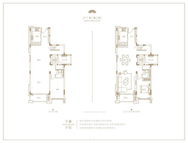 下叠建面相对小一点,约206㎡,空间感不错,配置了两层的地下拓展空间。
