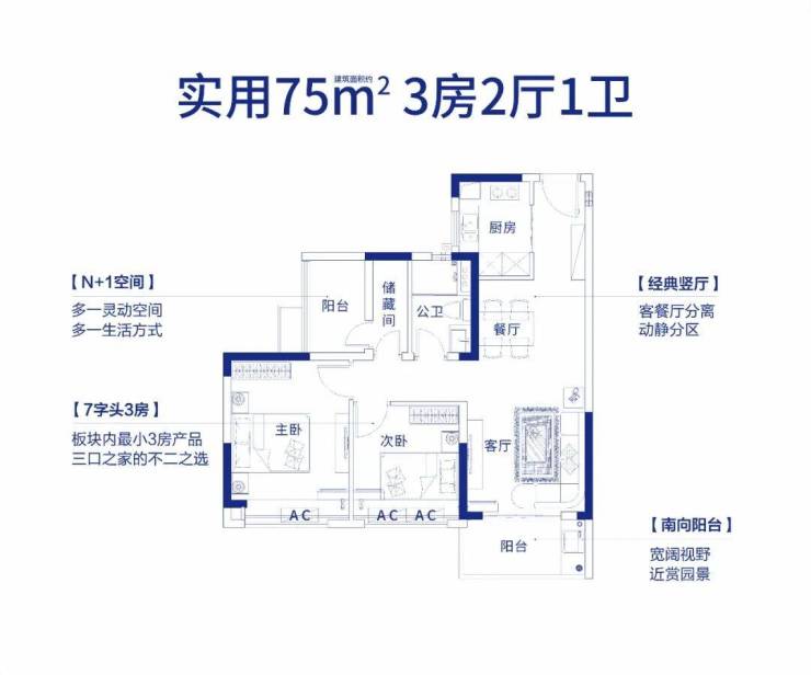 打造建面约75-105㎡三至四房