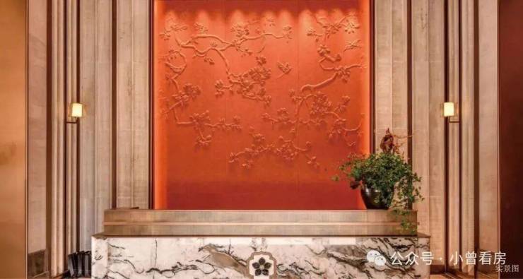 【泗水归堂】取春天清风徐来、水波不兴的意象,以“广绣隐现、幕墙灵动”为设计概念,打造泗水归堂空间入口照壁屏风,彰显归家尊贵感与品质