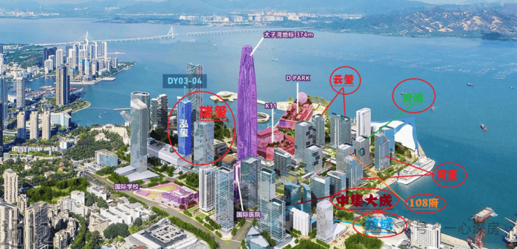 ◎ 鼎级配套:建面约170万m²海滨艺术文化综合体(约61万m²商务集群,含约380m超高塔尖商务总部+约46万m²滨海商业,含K11亚洲旗舰商业体、花园城VILLA等+约39万m²国际滨海社区+6万m²文化艺术中心+约8万m²五星级酒店,含约5万方美高梅酒店+约4.5万m²太子湾国际学校、国际医院),全方位城市配套集粹的的国际化“城中之城”。