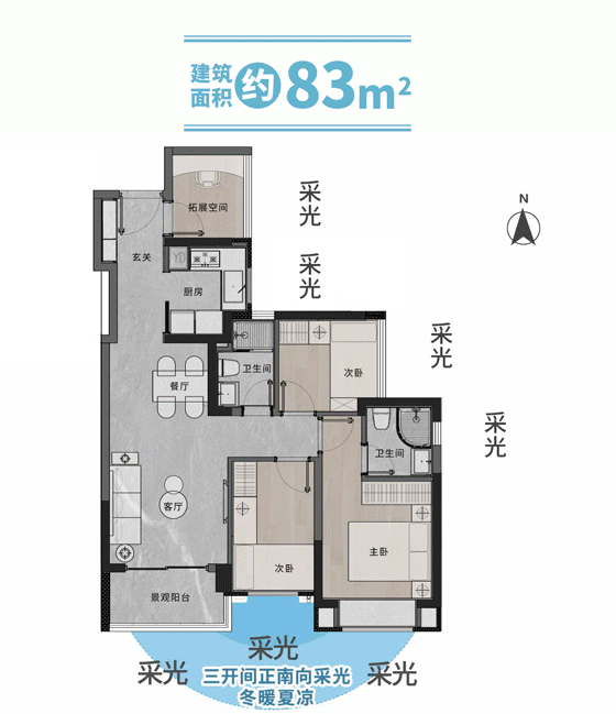 根据《广州市建筑工程容积率计算办法(征求意见稿)》建筑新规范,鼓励住宅套内设置入户花园、阳台等半开敞空间,且占比提升至20%,飘窗加宽至80cm。选房就要选按照新政策设计的新一批户型,更舒适价值也更高。