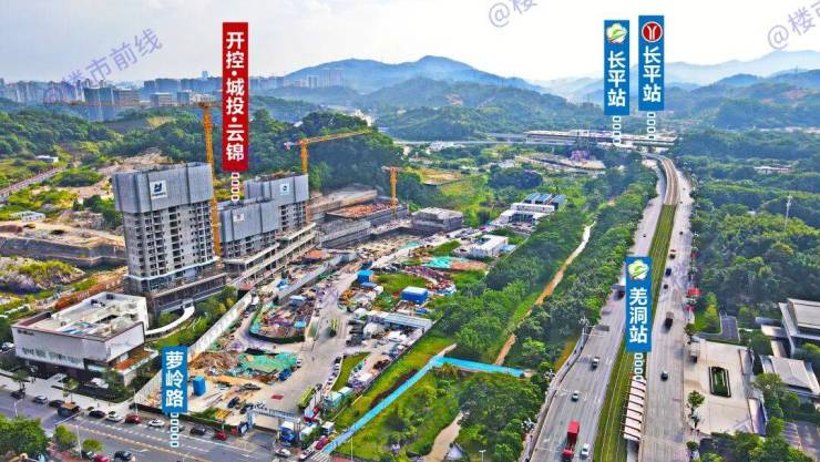 项目整体位于永顺大道与萝岭路交汇处西南侧,从21号线长平站出站到售楼部800+米,走路会有点小远,也可以换乘有轨电车1站到羌洞站,再走几分钟即到。