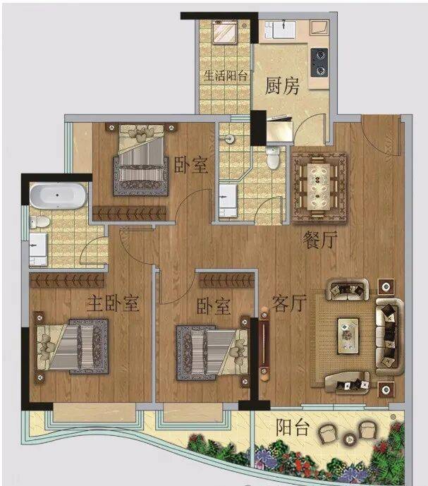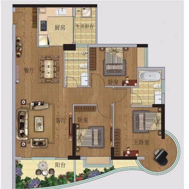 🅣🅞🅟02户型【95㎡3房2卫】东南向望江