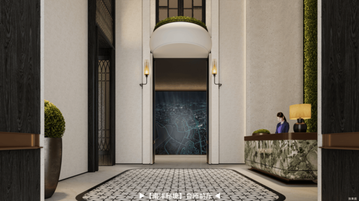 近百米酒店式精奢大门,拼花铝板吊顶、云英色石英砖等雅奢材质,全球甄选普拉达绿奢石辉映,珍寻百万级罗汉松迎宾,“丝路瀚海”艺术雕塑凌波而立,让每一寸抵达皆成礼序。