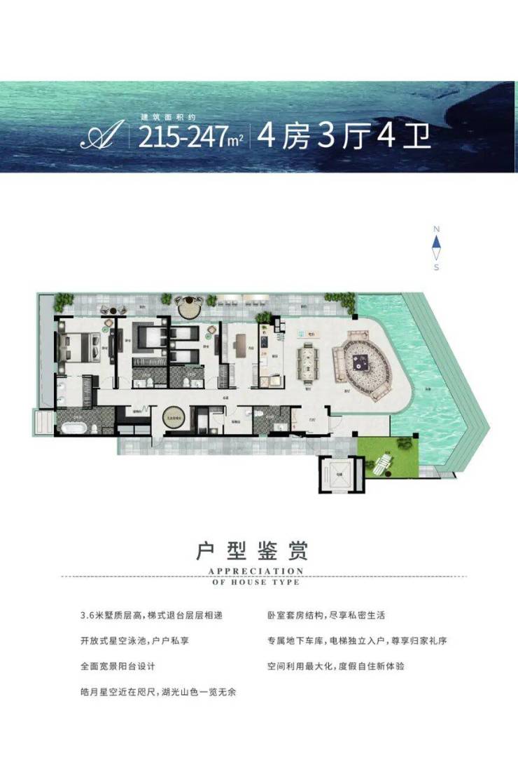 🏠A户型:建筑面积:215-247㎡ 四房三厅四卫