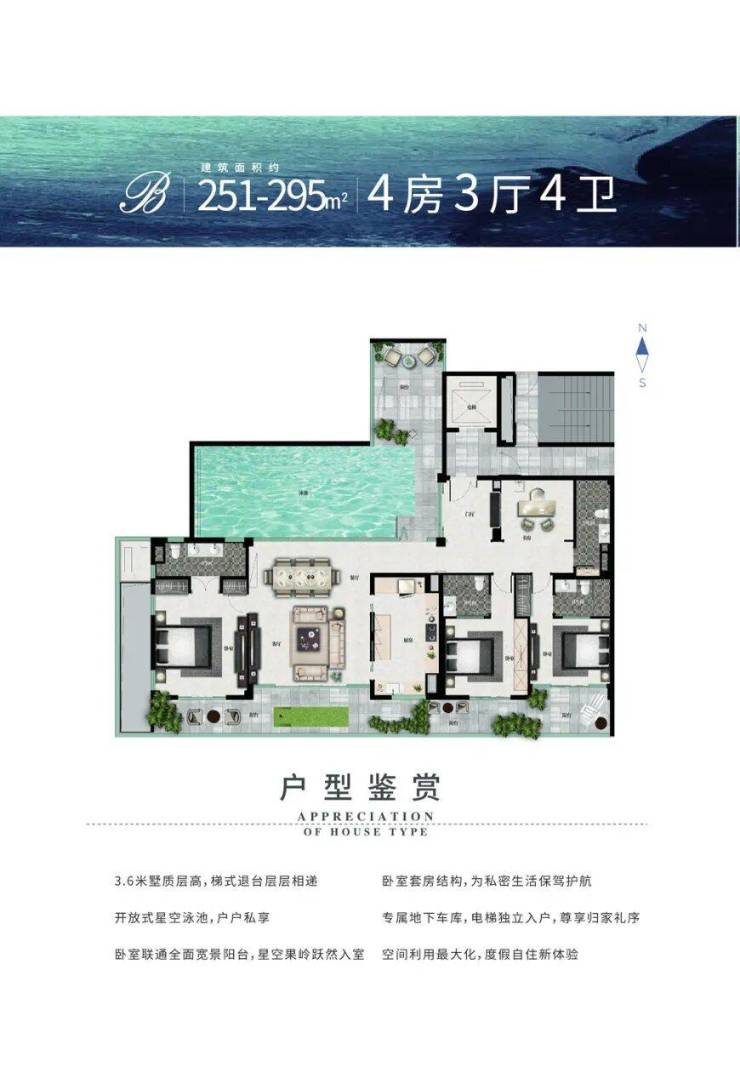 建筑面积:251-295㎡ 四房三厅四卫