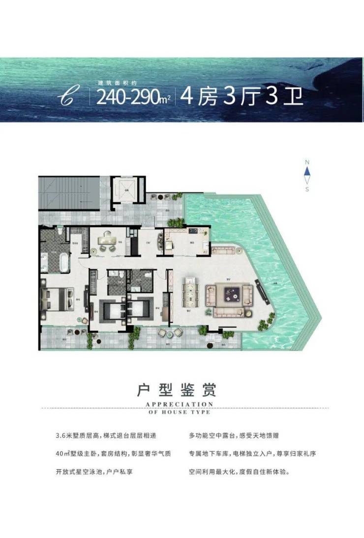 建筑面积:240-290㎡ 四房三厅三卫