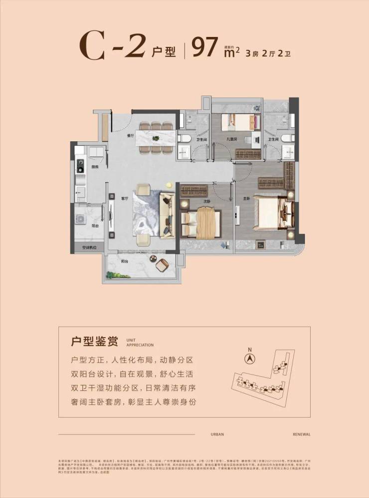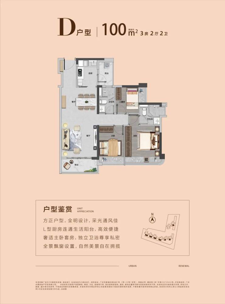 产品建面约86-130㎡三至四房,L型建筑布局,超宽楼距,采光充沛。