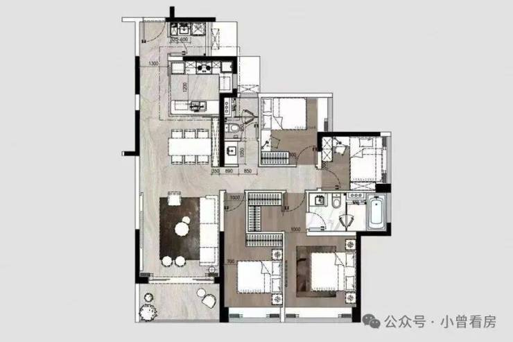 140平方米的户型则有横厅和竖厅两种布局可供选择,空间利用更加灵活;