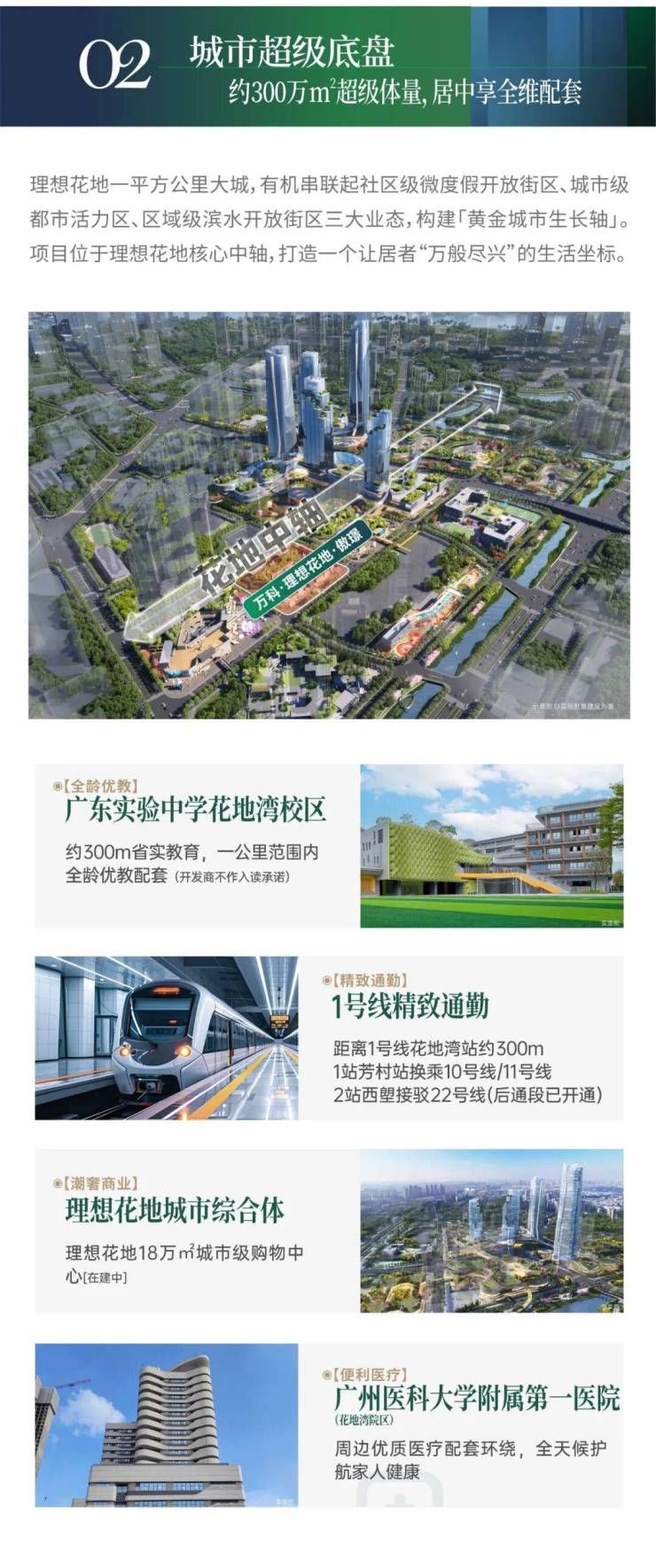 商业/生态:在建18万㎡购物中心、双太古、万象城;近花地湾公园、趣活公园等