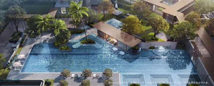 如社区园林汲取了宝格丽酒店的设计理念,在社区中间,打造了50米赛道级别宝格丽蓝宝石泳池。