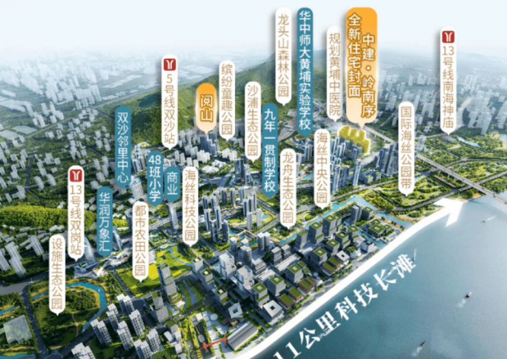 中建海丝城板块内规划22个城市公园,6大城市生态公园+9大特色主题公园+7个口袋休闲公园,背靠5000亩龙头山森林公园,南望珠江,5000亩龙头山森林公园(约1公里)、东侧海事运动公园(约150米)、西北侧沙浦国学公园(约400米)、沙浦生态公园(约600米),打造环绕式立体生态系统,百年沙浦,古榕树下,风水塘边,感受城市脉络与烟火温度,实现“推窗见绿,出门入园”。