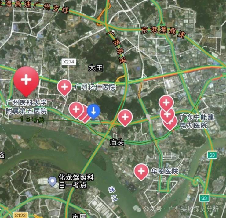 附近三甲医院中大附属第一医院、三甲广医大附属第五医院、自建黄埔区中医医院、广州市黄埔区妇幼保健院等,都在2公里之内。