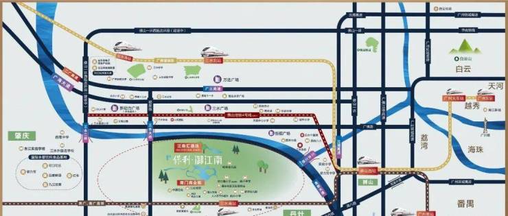 轻轨:广佛肇城际轨道,从肇庆站到广州火车站,全长111公里,在三水设置三水北站和云东海站两个站点,三水北站距离项目约10分钟车程,轻轨每15分钟一班车,可到达佛山西站和广州火车站。