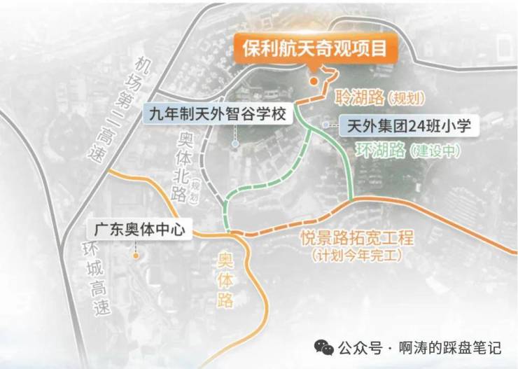 ✔项目自配建幼儿园,板块内天河外国语智谷学校(中小学) 即将于25年 9 月开学(直线距离约500米), 24 班天河外国语小学正在建设中, 以上两所学校均由广州天河外国语教育集团办学;