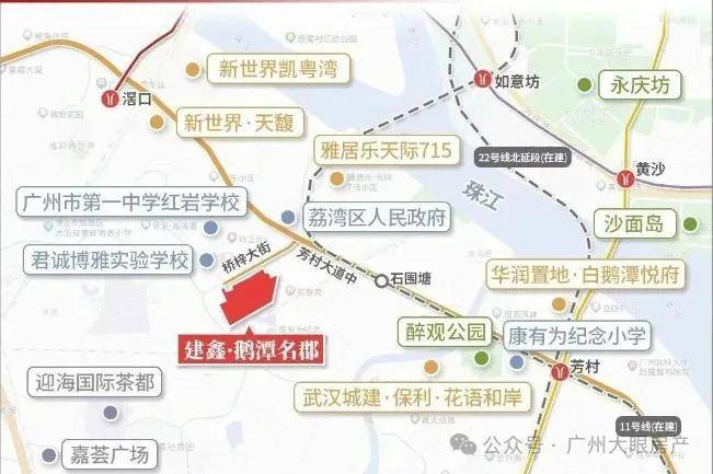 荔湾桥梓大街南侧地块位于白鹅潭板块,临近荔湾区府和芳村大道中,与在建11号线石围塘站只有800多米,去天河、海珠都会比较方便。