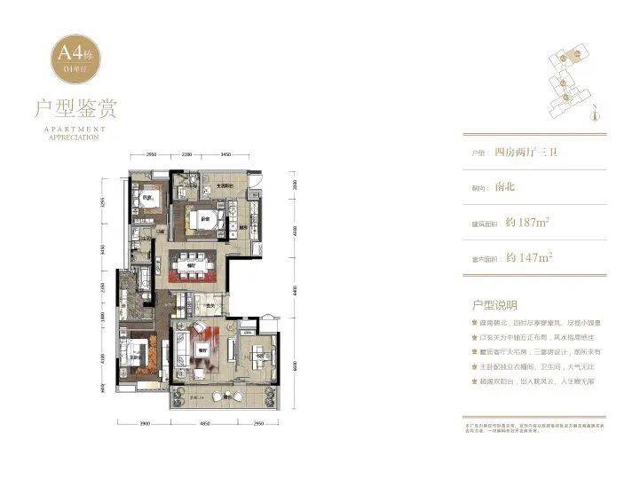 【187㎡四房两厅三卫户型鉴赏】