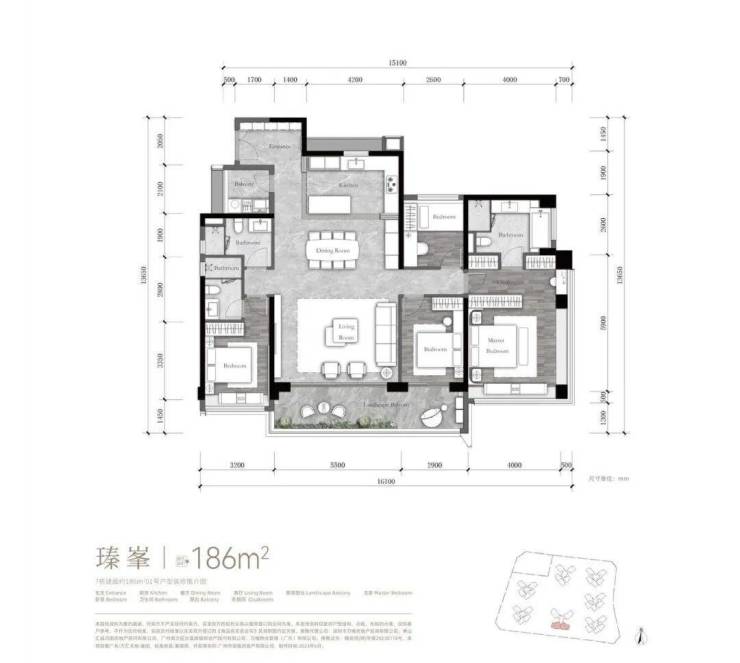建面约186m² 4房+𝟐厅3卫+灵动空间