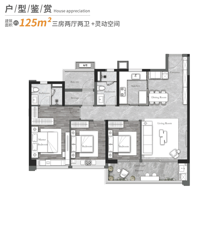 做到了真正的南向四开间设计,全明采光、多飘窗、南北通透。并且把面积有效控制在豪宅线下,不浪费一寸面积。