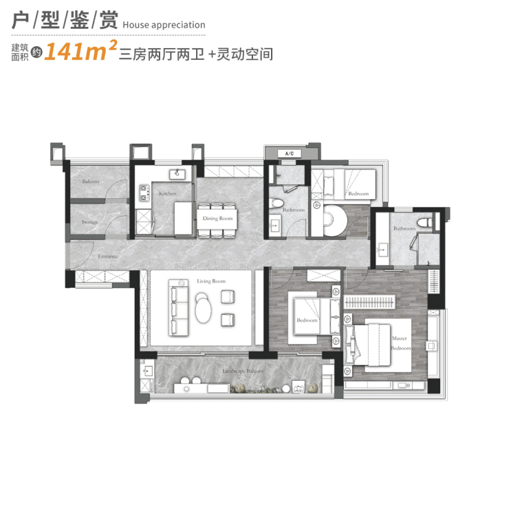 #03、04户型~独立单边位视野,约5m²独立序厅,营造步步尊崇领域感,LDKB洄游路线,超 80m²多功能巨幕宽厅,南向双套房卧室设计,漳展高阶人生气度,超 40m²端厅套房主卧,奢享星级酒店卫浴体验
