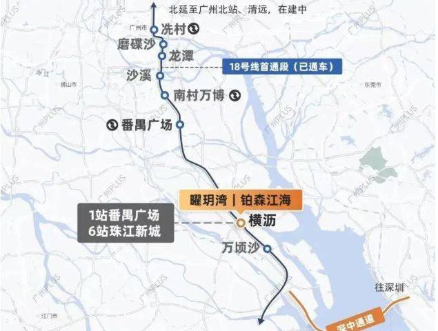 地段的价值,离不开交通的支撑。旭辉曜玥湾距地铁18号线横沥站仅约1公里,步行或短途接驳即可轻松抵达。作为广州“最快地铁”,18号线6站直达珠江新城,实现30分钟内通勤天河核心区;未来还将延伸至中山、珠海,进一步打通珠江西岸城市群脉络。与此同时,规划中的22号线将连接深圳、东莞,构建起覆盖整个粤港澳大湾区的高速轨道交通网络。