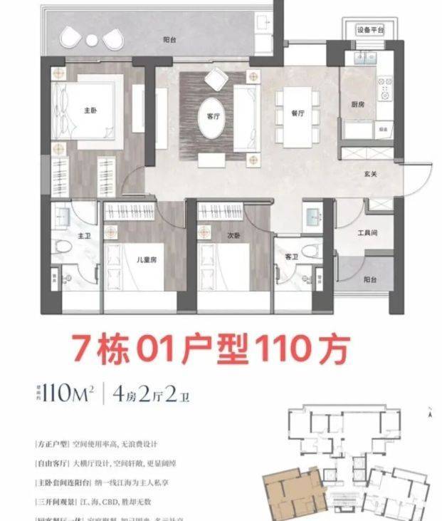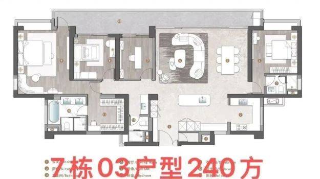 产品力是高端住宅的灵魂。旭辉曜玥湾采用旭辉集团最新研发的第七代CIFI-7产品体系,从空间设计、智能科技到服务细节,全面对标国际豪宅标准。项目主力户型涵盖110㎡至245㎡,得房率高达85%,远超市场平均水平。其中,245㎡大平层更配备双主卧套房与27㎡瞰江阳台,实现功能与景观的极致融合。
