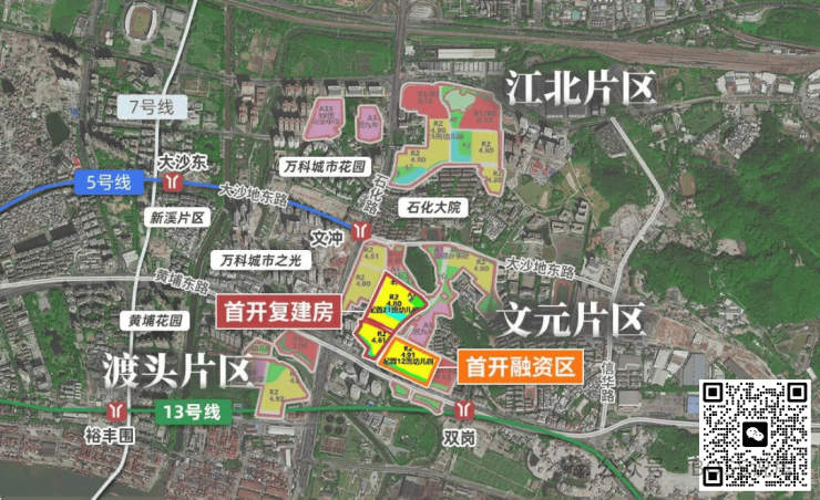 文冲东旧改分为三个片区:渡头组团,文元组团,江北组团