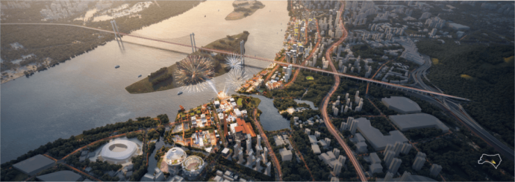 跟随城市轴心进化的步伐,2024年6月,《广州海丝城规划设计》深化成果获批,以“世界一流滨水城区”为方向,打造 “海丝国际合作先行区、东部中心创新活力承载区、高质量宜居生活城区”。