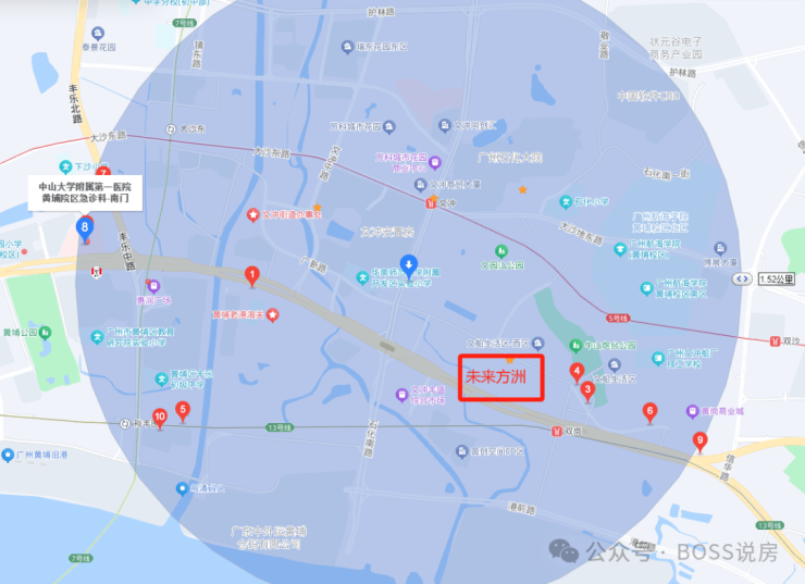 另外距离未来方洲1.5公里处,就是中山大学附属第一医院黄埔院区,自驾10分钟之内即达;