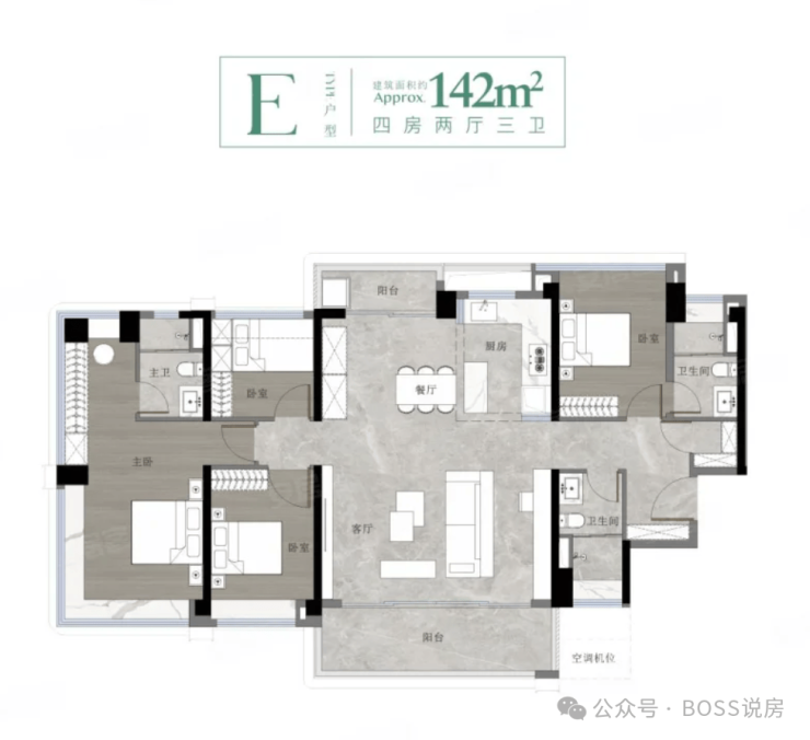 在售户型:建面约79-142㎡三至四房