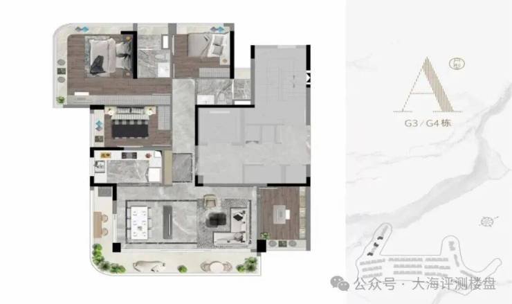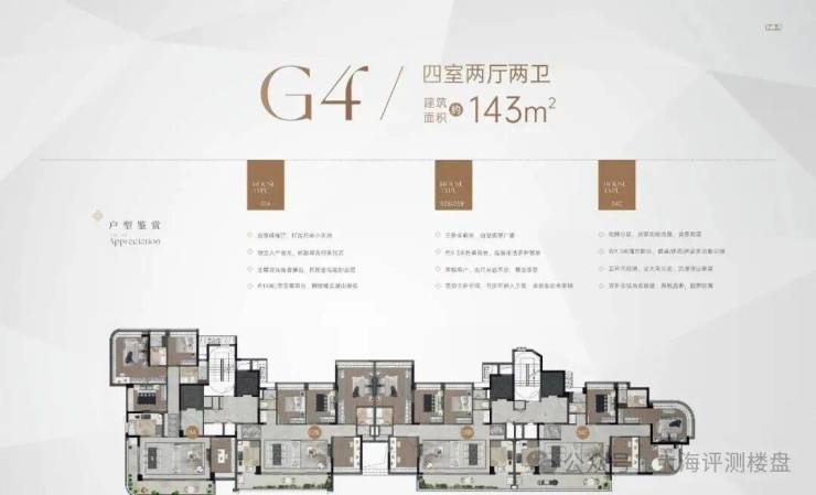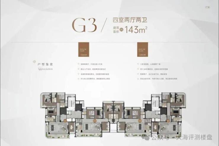 3、产品品质高端:定位为高端改善型住宅,户型设计为143㎡的大平层和叠墅,板楼设计、两梯两户或一梯一户,专梯专户,私密性强,得房率高,居住舒适度高。
