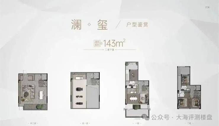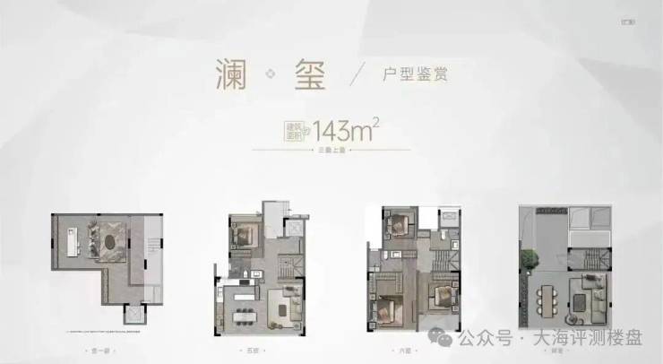 项目除了4栋R1-R4栋政府配建房以外,对外销售的产品涵盖叠墅、小高层和高层,户型建面均为143㎡。中间一线临湖区由18栋4-6层的叠墅组成一梯一户,合计188套;右侧为2栋9层高的小洋房,两梯两户,都是独门独户。同时还有4栋保障性住房,左边是2栋16-17层的小高层,两梯四户。