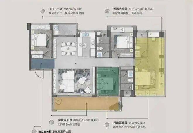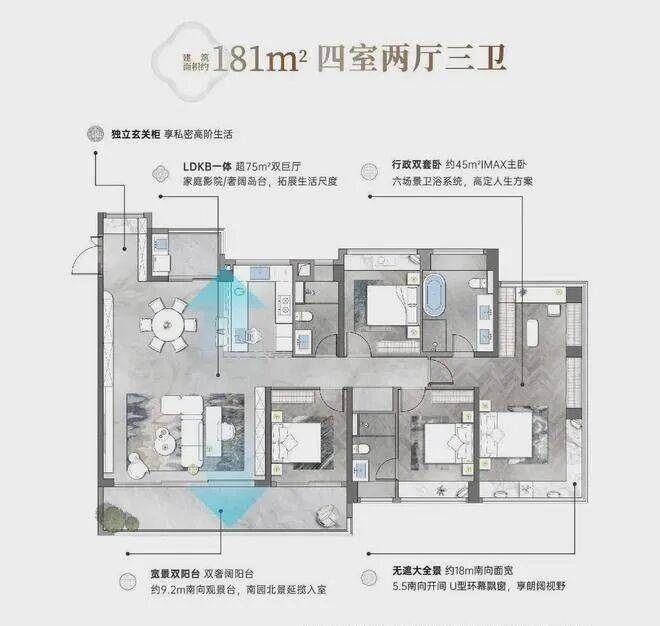 建面约181㎡四房:在拥有四个卧室的基础上,开创南向双套房设计,奢适度不含糊。算上可拓展空间,你可以感受到建面约200㎡豪宅的霸气。