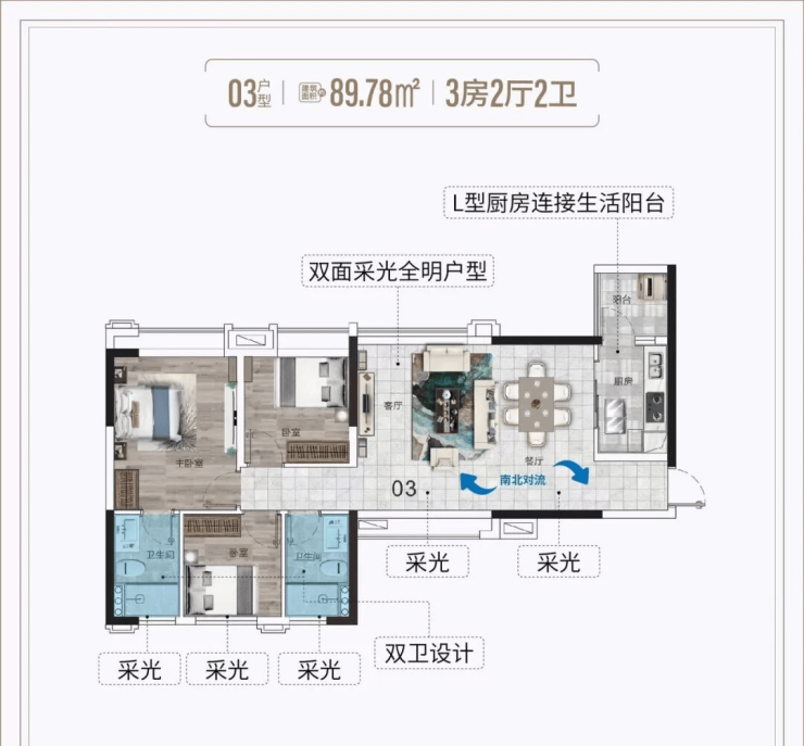 南北对流,通透明亮