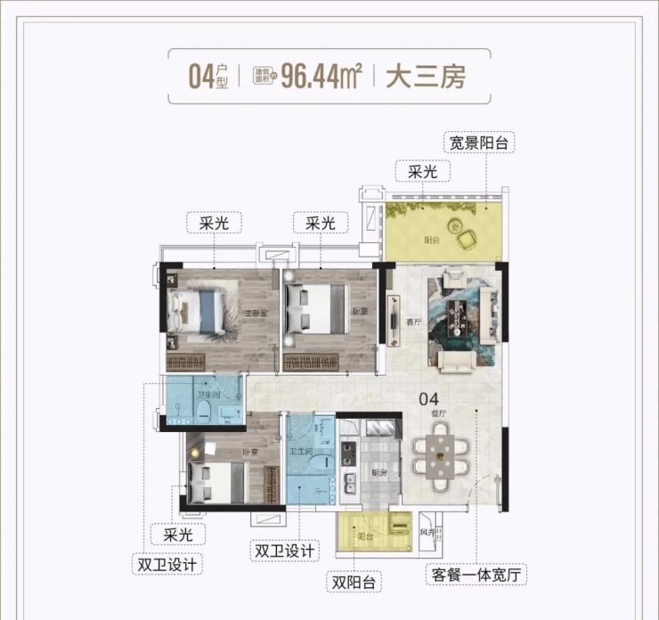 【96平3房2厅】