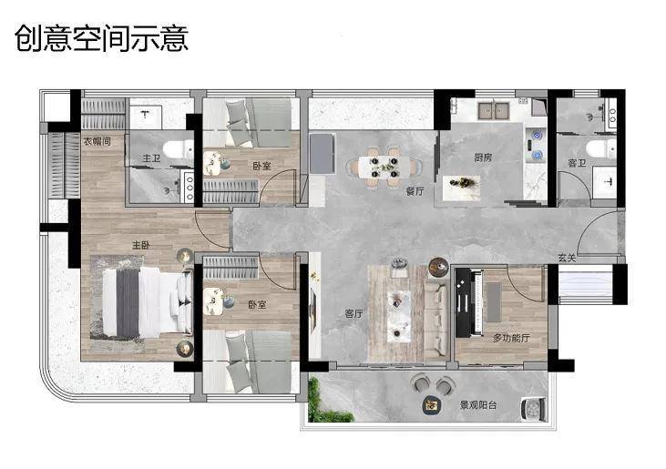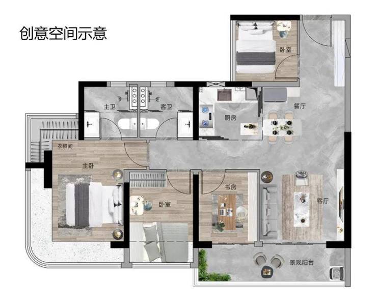 南向大面宽采光,主卧270°弧形飘窗瞰山景,打造自然宜居新场景