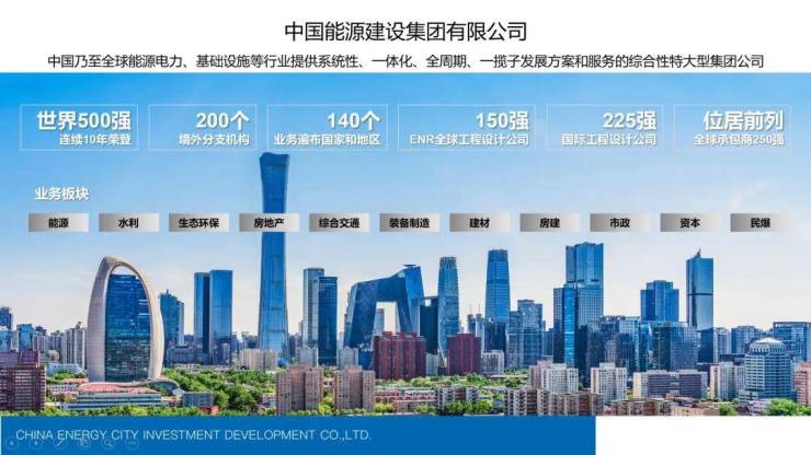 央企中国能源建设集团有限公司,连续10年荣登世界500强;中能建城市投资发展有限公司,国务院国资委首批确定以房地产为主业的16家央企之一,“中国房地产公司品牌价值十强”、“中国房地产百强企业”。
