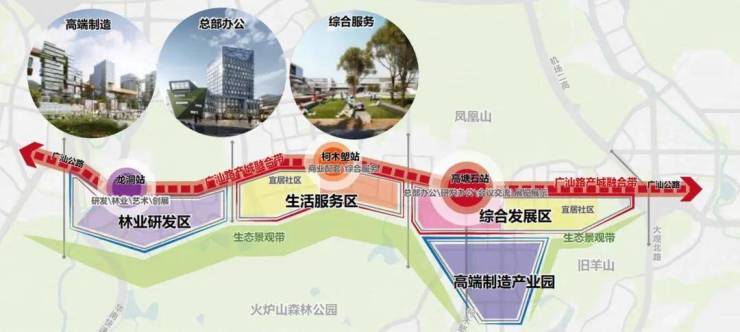 形成高塘石、柯木塱、龙洞三大TOD发展中心,高塘石规划综合发展区及宜居社区。