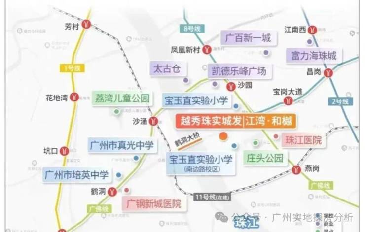 6、教育资源丰富:虽未配建小学,但属于宝玉直实验学校对口板块,可摇号入读,周边还有广州培英中学、广州真光中学等名校。
