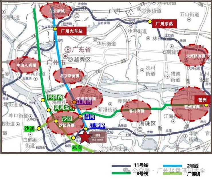 交通配套:三地铁2/11/广佛线环绕,江泰路站仅约400m(11号线年底开通)