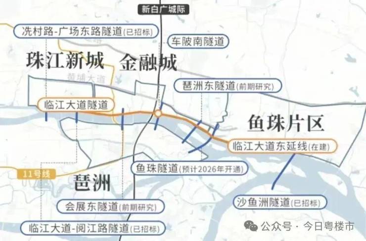 交通方面:海珠(琶洲)低空飞行运营中心官宣将在年中投用,从琶洲直飞白云机场仅用9分钟。未来还将开通珠海、深圳、澳门等城际低空航线,预计日均飞行将达100-150次。与此同时,新白广城际也将在今年开通,琶洲和金融城的距离将缩短成一个站。其实,去年开通的11号线,已经实现了这一点。未来,随着琶洲与鱼珠隧道,琶洲与珠江新城隧道的开通,一江两岸将被彻底缝合。