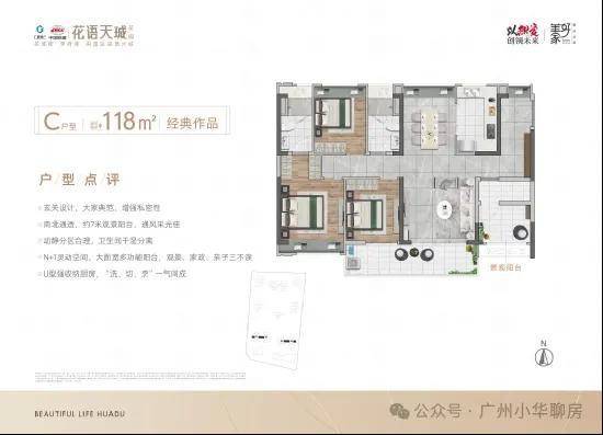 约118㎡3+1多功能空间,入户带玄关,增加居住私密性,兼顾居住舒适性与功能性的平衡,南北通透,约7米景观阳台连接客厅