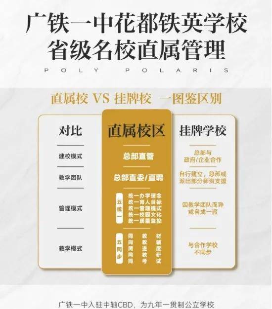 广州铁一中学花都铁英学校:为省一级75班九年一贯制公立学校,由广铁一中直属管理,学校管理人员及教职工由广铁一中直委/直聘,高级教师、具有研究生学历教师占比73%,执行五统一五同步教学理念确保办学质量;