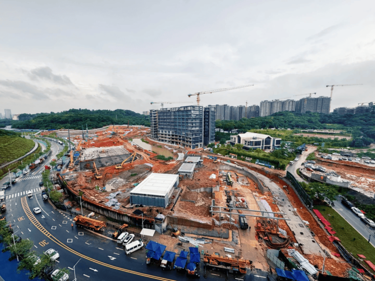 目前正在赶进度的是营销中心和三个样板间,预计会在8月底完成示范区的搭建。